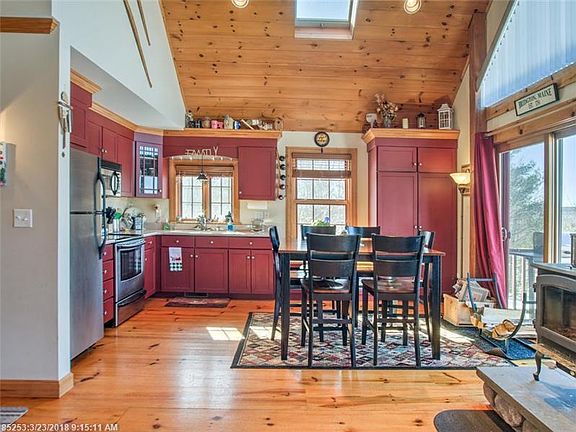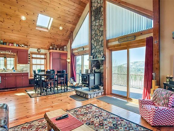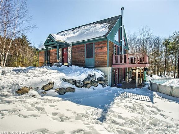 Wow! Spectacular views of Pleasant Mountain/Shawnee Peak! If you need an open and spacious view, you should see this! This three bedroom home is lovely and sits on 3.9 acres. It has a chalet feel to it with open kitchen/living room and floor to cathedral ceiling views. Deck off living room enlarges your dining/playing space in warmer seasons. Master bedroom and 3/4 bath is on lofted second floor. Great family room in basement with ground level deck and the same views. 2 bedrooms and full bath on main floor. All situated conveniently in Bridgton with easy access to lake fun, skiing, golfing and more. Schedule your showing immediately!