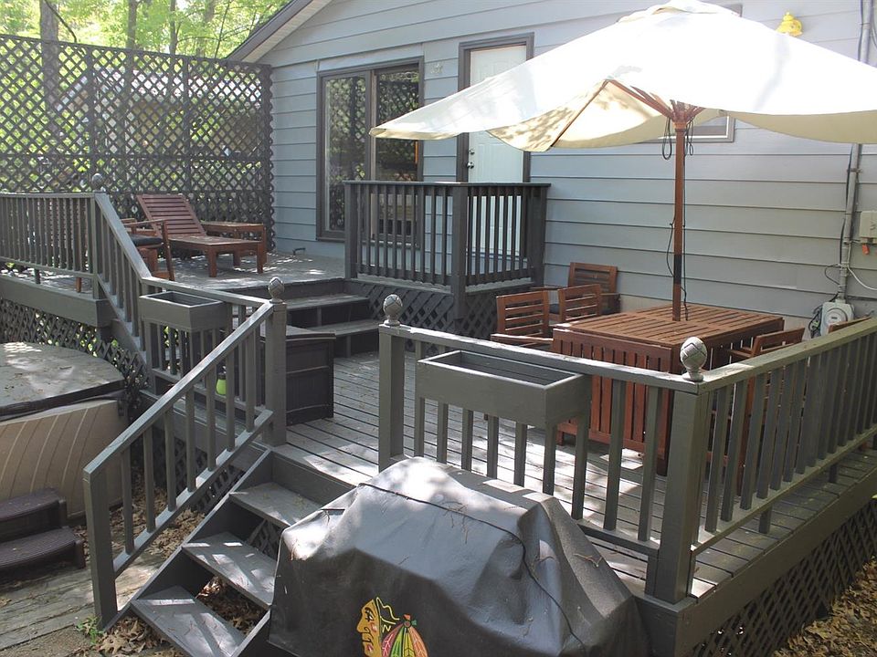 Completely rehabbed in Shoreland Hills in 2017. Now with an excellent rental history. Open floor plan, 4 bdrms/2.5 baths. New kitchen w/ stainless appliances, new bathrooms, updated farmhouse design. Fresh exterior paint, and newly installed firempit in backyard. A short walk to Stop 31 beach.