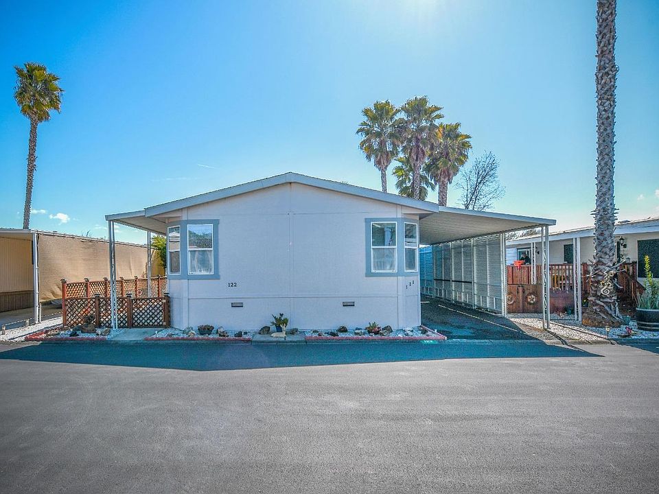 Spacious 4 bedroom home located on a quiet cul-de-sac in Calistoga Springs 55+ Park near downtown Calistoga. Built in 2001 with high ceilings, living & dining rooms, a large kitchen with a center island and gas range, main bedroom located on one end of home with an adjoining bath with dual sinks, large soaking tub and separate shower stall. The other three bedrooms are on the other side next to a hallway bath. Separate laundry room and covered carport with workshop. Outdoor enclosed newly fenced yard. It also has one of the lowest monthly space rents at $541. Park offers a community clubhouse and natural mineral water pool & spa open year round for your enjoyment.