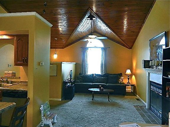 Great location and low maintenance! It's like being in the country. Located just past Stoneybrook Subdivision. This home has wonderful appeal and charm with tongue and groove wood cathedral ceiling in the upstairs and a cozy fireplace in the great room. Kitchen has a bar and a dining area. The deck over looks an oversized manicured back yard that flows into a tree line and green space. Owner has converted part of the garage to add an additional bonus room with heat and air and still has room for some garage storage...maybe even a Smart Car... definitely room for a motorcycle.