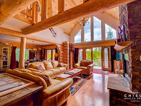 Lake front log home only 12 miles from Angel Fire ski area & Golf course! Situated in the very private Hidden Lake development, this home sits on over 12 acres and has a long driveway that puts the home out of sight from the road. Upon arrival, you'll be surprised to see such a well maintained home with unobstructed views of Hidden Lake, one of the very few private lakes in New Mexico. Inside, you'll find a spacious great room with hardwood floors, wood burning fireplace, vaulted ceilings and a window wall looking out to the lake and mountains. The high end kitchen features Wolf and Sub Zero appliances, granite countertops and plenty of space for entertaining. The first bedroom is downstairs, with 2 more guest bedrooms upstairs each with private balconies. The spacious master suite is also upstairs with 2 private balconies, bath, sitting area, and a 5th bedroom / bonus room above the attached garage. Come see this very unique log home in an absolutely stunning environment.