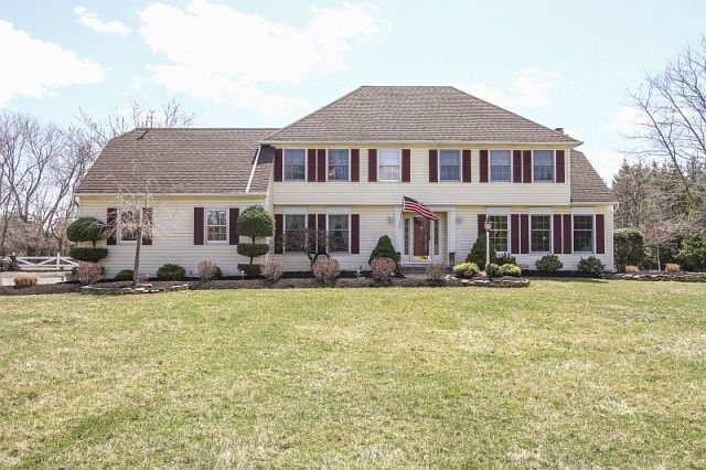 Welcome to this meticulous,well maintained Colonial w/gleaming hardwood floors set on 3.79 park-like acres. Large kitchen w/stainless steel appliances & subzero refrigerator w/patio door to open to expansive rubberized deck which leads to outdoor hot tub. Adjoining family room w/Napoleon wood burning heatolater fireplace. Attractive wood staircase leads to upper level with 4 bedrooms. Large master suite with adjoining sitting room/office. Masterbath w/cathedral ceiling,skylight,jetted Jacuzzi,mirrored wall and ceiling fan. Hardwood floors,wood molding & 6 panel wood doors throughout the home. Basement with eating area/leisure room and workout area and storage. Whole house generator. Large property professionally landscaped. 3 sheds - 2 with electricity. SO MANY AMENITIES TO THIS HOME SET IN THE COUNTRY.