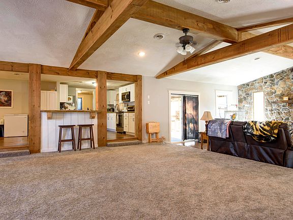 Don't miss this adorable home on over half an acre! You will love the wide open feel, stone fireplace, wood beams, new paint, new flooring, & new Trane HVAC! Culligan water softener stays too! The master bedroom has 2 closets and 2 vanities, and another bedroom is all set up for an amazing craft/sewing room complete with all the shelving. There's a great covered patio area for a hot tub, a screened in porch, a pond and raised beds. There's also a 14x24 shed to store your extra toys!