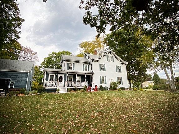 Unique Victorian-era home within easy walking distance to Dean College, the Franklin commuter rail station and downtown. The large corner lot is great for kids and pets. The gourmet kitchen features an open floor plan with cathedral ceiling, custom cabinets, and Viking appliances. Two large French doors open to the rear deck and outdoor fireplace, which is ideal for entertaining. The south facing farmer's porch provides a warmup on a sunny winter's day. There are unique original hardwood floors throughout the house. The property also features a large two storey carriage house with basement and well water availability.