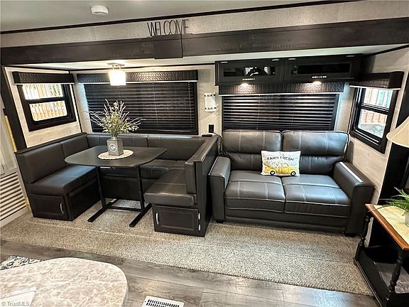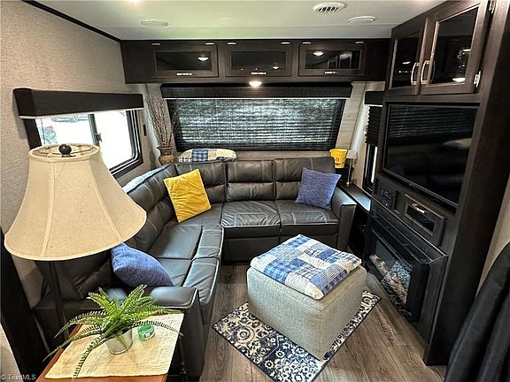 Discover the charm of resort living with this 2021 Jayco camper, permanently situated on a deeded lot at Badin Shores Resort, Badin Lake. The camper boasts a cozy sectional sofa that converts to a sleeping area, an electric fireplace, and a mounted TV in the living room. Enjoy additional sleeping space with a love seat & convertible dinette area. The modern kitchen is equipped with stainless steel appliances, including a full-size refrigerator. The bedroom features a king-size bed and built-in cabinetry. Step outside to a covered porch or a spacious backyard with a fire pit area and storage building. Badin Shores Resort offers a swimming pool, fishing pier, waterfront boardwalk, putt-putt, basketball courts, boat ramp, clubhouse and more. Perfect for relaxing getaways or entertaining guests, this property combines comfort and convenience in a beautiful lakeside setting.