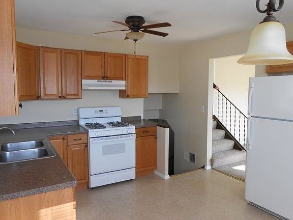 This spacious 3 bedroom 1 1/2 bath unit is clean and move in ready. On the main floor there is a large living room and a spacious eat in kitchen. There are 2 large bedrooms on the second floor and a full bath. The lower level has a large family room with a fire place and exterior access. Also a 3rd bedroom and a 1/2 bath. You will get 1/2 of the 2 car garage and 1/2 of the large shed in the back yard. The Landlord maintains the exterior and snow removal The water and garbage pick up are included in the rent. There is space for 2 cars only- 1 in garage and 1 exterior space. Please- no cats and no smoking. Home has all fresh paint and new carpet.