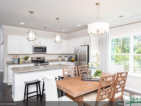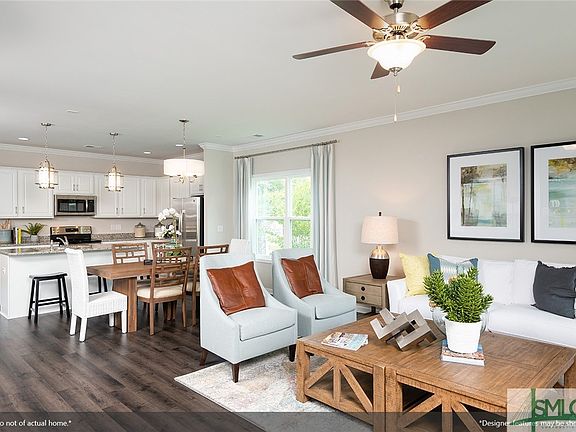 This two-story home comes with four bedrooms and two-and-one-half bathrooms. An office is located just inside the front door with a welcoming foyer. The kitchen, with Stone Gray cabinetry and a center island, opens to the eating area and great room. Located on the first floor, the primary bedroom features a primary bathroom with a dual vanity, quartz countertops, luxury vinyl plank flooring, and a garden tub with a separate shower. Three guest bedrooms, a full bath, and a loft is located on the second floor in addition to a walk-in attic space. A covered porch sits off of the great room and the lawn is fully sodded with landscaping and irrigation.