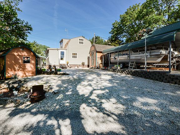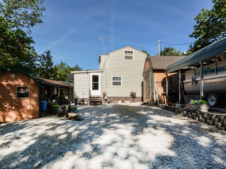 A terrific cabin on the lake! The moment you arrive you get in relaxation vacation mode. This cabin has 2 BR (one loft) and 2 B (one loft) along with central heat and air. Why pull and set up an RV when you can go relax in your own cabin that includes an outside living, kitchen, and dining area already to go. Two storage buildings provide ample storage for lake toys with laundry w/d hook-up in one. Parking on both sides of lot. Carport included. Walking distance to lake and easy access to boat launching area. Roof replaced 4 yrs ago and along with the vinyl siding. No need to rent boat storage because there is room to store a boat under the carport or on the back side of the lot. RV parking on property too. Minutes away from Big Cedar, Branson, Silver Dollar City, area golf courses.