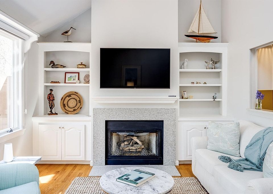 Bright and Light 3 level townhome on Cape Cod. Main floor living consists of laundry in 1/2 bath, spacious primary BR ensuite with 2 closets and nearly new carpeting. Hardwood flooring in the dining and living room areas, and kitchen features granite counter tops and stainless steel appliances. Enjoy a sunny spacious deck overlooking scenic landscape. Upstairs you'll find a generous size loft area and another private and spacious guest suite with full bath. The walkout lower level is finished with another full bath, for total of 3.5 baths, storage area and separate workshop too. Professionally cleaned inside and out including windows and soft washing- Gas fireplace and furnace, central air and attached 1 car garage. Enjoy Kings Way many private amenities, public golf course and restaurant makes every day feels like vacation. Experience easy living and partake to Dennis and Yarmouth Port Beaches just around the corner from this active living community on the North Side to Cape Cod Bay.