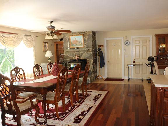 AMAZING VALUE - Welcome to a Cabinet Maker's Home offering beautiful custom cabinets/woodwork throughout! The entry hallway invites you into a spacious open concept area offering the Kitchen: walls of custom cabinets, Corian countertops, and an oversized breakfast bar; Dining Area, the Formal Dining Area, hardwood floors, beautiful picture window shinny natural light into the room, and a fireplace with a wood stove on the hearth! French doors lead you to a Great Room/Living room, and takes you to the back deck and Gazebo, overlooking the backyard. The laundry room just off the kitchen, has a utility sink and a wall of custom cabinets for storage, and leads to the third bedroom/office area. The main hallway leads you to a full bath with a custom vanity, to a second bedroom, and to a front-to-back Primary Bedroom suite offering two separate custom vanities. Direct access to the attached oversized 2-car garage and to the partially finished basement with a pellet stove. Workshop/Barn with electric & heat. Come visit our Open House Sunday, 8/4 from 11am to 1:00pm.