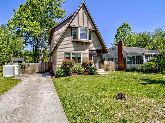 This wonderful Charleston style/Tudor home built in 2014 and designed by local architect Phillip Humphrey- is the best of both worlds! It feels like new construction and also fits into a popular older neighborhood close to the Historic downtown area, the Cargo District and the Soda Pop District. The floor plan is open with lots of windows and glass doors to leave open as you lounge on the large screened in porch. It is wired for dual level surround sound, the kitchen has plenty of soft close cabinets, under cabinet lighting, stainless appliances -new dishwasher and a wine fridge!l The interior has been freshly painted, mostly hardwoods and new carpet in 2 of the bedrooms and new LVP flooring in the kitchen/mud room/baths. Don't forget the 7x7 office nook! It has a deck and outdoor shower built in 2022. Come and see this unique property just 8 miles away from Wrightsville Beach and 2 miles to Historic Downtown Wilmington.