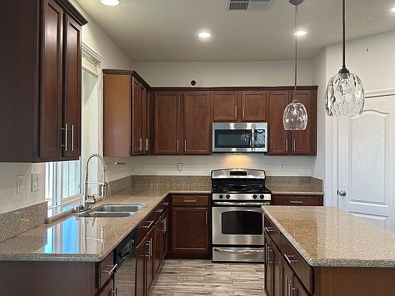 Spacious 5 Bedroom, 3 Bathroom Home for Rent in the Sought-After Parklands Neighborhood! Step into this beautifully maintained single-family home and be welcomed by a gourmet kitchen designed to impress! Featuring sleek granite countertops, rich maple cabinetry, a large center island, and stainless-steel appliances, it's a true chef's dream. The open-concept living room provides a perfect space for entertaining and everyday living. On the main level, you'll find a private office and a bedroom with a full bathroom ideal for guests or multi-generational living. Upstairs, retreat to the spacious primary suite, complete with a luxurious soaking tub, separate shower, dual sinks, and a walk-in closet. Two additional bedrooms, a full bathroom, and a convenient laundry room complete the upper floor. Enjoy outdoor dining and relaxation under the covered patio, and take advantage of the expansive side yard with double gate access perfect for storing a boat or RV. Located in a prime Oakley location, close to top-rated schools, parks, shopping, downtown, and with easy freeway access, this home offers both comfort and convenience. Renter is responsible for all utilities and regular garden maintenance.