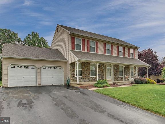 Beautiful THP Built, Center Hall Colonial in Castle Hill features full covered front porch with stone facade. Formal entry with crown molding and glistening hardwood floors which opens to both formal living room and dining room. Formal Living Room features custom crown molding, chair rail and oak hardwood floor perimeter with wall to wall inlaid carpeting. Formal dining room featureschair rail and crown molding, oak hardwood floor perimeter with wall to wall carpet. Dining room flows into the eat-in Kitchen and continues the oak hardwood flooring, solid raised cabinetry, solid granite counter tops, gas range with overhead microwave, built-in dishwasher and large pantry,secretary desk area with granite counter top,crown molding and separate eating area with slider to covered patio with Trex decking overlooking the beautiful heated in-ground pool. Half wall from eating area of Kitchen opens into the Family Room with beautiful hardwood flooring and features over sized triple windows that welcomes in the sunlight, gas fireplace with custom mantle and marble surround. Family room also features custom crown molding and chair rail. Convenient First floor powder room with pedestal sink. Open staircase from foyer leads to 2nd floor landing with hardwood floors that continue into the Master Bedroom with ceiling fan and large walk-in closet. Luxurious Master Bath features walk-in custom ceramic tile surround shower with seamless glass shower doors and both hand-held shower head and rain shower head, custom bench and three built-in shelves, custom ceramic tile floor, double vanity and separate steeping tub with ceramic tile surround. Three additional bedrooms, all with neutral carpet and ceiling fans. Additional hall bath with, glass enclosed tub/shower combination with custom tile surround. Convenient second floor laundry. Lower level basement has been finished with neutral carpet and walls. Just in time for summer fun, back yard with heated in-ground pool off covered