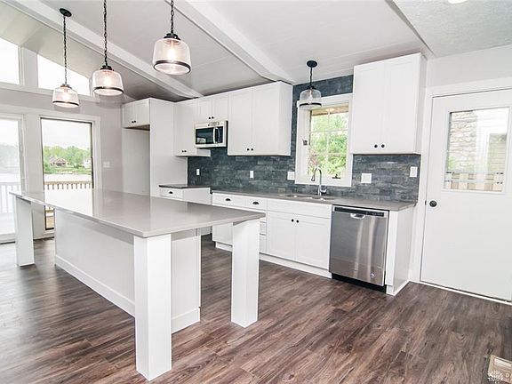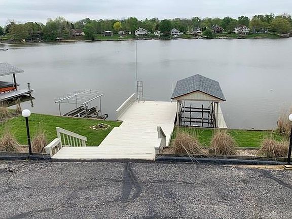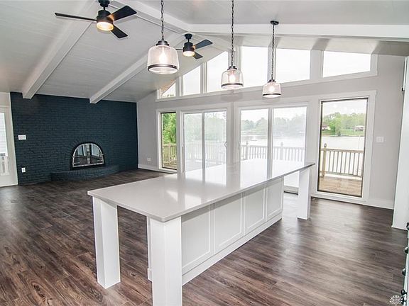 Lake front property! This completely remodeled 2 bedroom, 2 bath brick home is on one of the best locations on the lake. The newly opened floor plan is all about the view. Totally brand new kitchen boasts a huge island with counter seating, cathedral ceiling frames the wall of windows out to a large deck. This home has new flooring throughout the entire home, finished walk out basement which offers a room that could be an option for a 3rd bedroom (no egress window). Home has a spacious private dock and boat lift and the garage is tandem for boat storage, everything you need to enjoy the lake. This home is perfection!