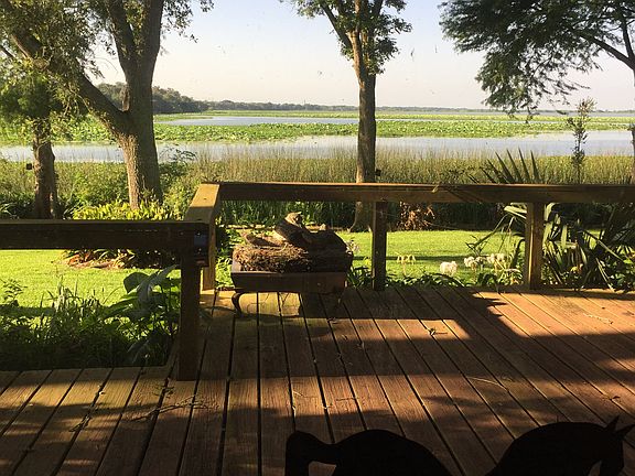 Beautiful home at 122 Laughlin Eagle Lake, TX 77434. One of few homes on the water that faces the trees southern shoreline. Two giant cypress trees, Oaks and pecans too.