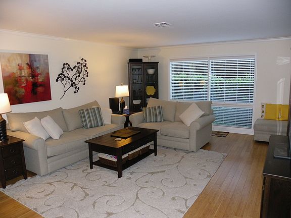 True one floor living: NO STAIRS, ground floor corner unit with private patio, renovated kitchen and fireplace. Complex offers Pool, Clubhouse, Spa and Weight Room.Hardwood floor, crown moldings, and abundant closets with separate storage area.