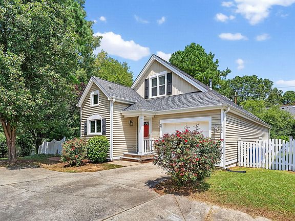 Delightfully bright home in desirable Woodcroft with large main level primary suite! This property is bathed in natural light, with cathedral ceilings, skylights, and transom windows. It is also surprisingly private, tucked away on one of the largest lots in Legacy Place and complete with an extra parking pad. The smart floorplan features 1.5 stories, with 2bd/2ba on the first floor and a loft, bedroom, full bath, and unfinished storage upstairs. This worry-free home has been pre-inspected and also features a newer HVAC (2022), water heater (2024), and sealed crawlspace with lifetime warranty (2021), as well as a brand-new garage door motor (2025). Looking for outdoor living? Enjoy the fenced yard with a fruiting fig tree and newly stained deck, or hop on the Woodcroft trails and the American Tobacco Trail for some exercise. Swim, tennis, and social opportunities are available through https://www.woodcroftclub.org/. Perfect location with quick access to RTP, RDU, Duke and UNC. Don't wait!