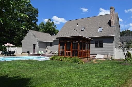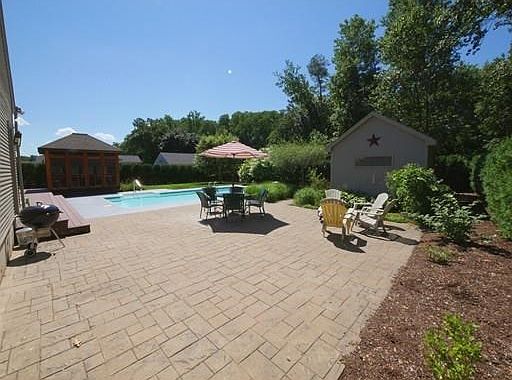 Expect to be impressed with this meticulously maintained colonial style home set on beautiful private level fenced lot with in-ground swimming pool, gazebo and over sized stamped concrete patio. This house has so much to offer and features an open floor plan with gourmet kitchen w/island, granite counters, wine cooler, stainless sub zero refrigerator, JenAir gas stove, stainless dishwasher & microwave/conv oven, 2 story brick fireplace in family room w/cathedral ceiling, skylights, black walnut flooring in living room, recessed lighting, crown moldings, decorative interior pillars, lots of french doors, formal dining room, 1st floor laundry, sliders out to trex deck w/covered awning over looking pool, central vac, security system, central air, gas-FWA heat, front yard irrigation system and a shed w/electricity. No flood insurance required!!!