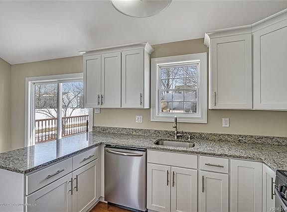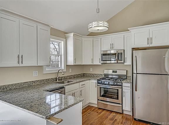 Buy this home with No Money Down if you qualify for USDA loan! Just move in your furniture into this remodeled 3 Bedroom 2 Full Bath open floor plan ranch. Featuring cathedral ceilings, New white shaker kitchen cabinetry with granite counter tops and stainless steel appliances with additional granite breakfast bar in the family room. Dining Room, oversized 20 ft family room and entertainment size living room all with stunning hardwood flooring. Master Bedroom Bath Suite with newly renovated bath with custom ceramic tiling plus main bath has also been remodeled with ceramic tub surround. New doors and trim work throughout, curb and sidewalk community and convenient location.