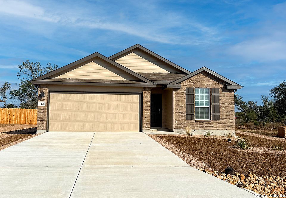 Step into The Brown floor plan at High Garden in Comfort, TX, a single-story home featuring 3 bedrooms and 2 bathrooms. The Brown also offers 3 classic front exteriors, a 2-car garage and 1651 square feet of comfortable living. The Brown features classic design and modern features that blend seamlessly to create the perfect everyday space. A welcoming foyer leads to a formal dining room with large windows and a connecting doorway to the galley kitchen. The kitchen includes plenty of cabinet storage, quartz counter tops, subway tile backsplash, stainless steel appliances, and a electric cooking range. A large kitchen island with a deep, single basin sink overlooks the spacious living room. The large first bedroom suite is located off the family room and features a double vanity sink, separate tub and walk-in shower and a private water closet. You'll have all the space you need to get ready in the morning with a large walk-in closet. Spacious secondary bedrooms with large closets and quality carpet flooring, a second full bathroom with plenty of natural light, and a utility room are conveniently located off the living room. Additional features of The Brown include tall 9-foot ceilings, 2-inch faux wood blinds throughout the home, luxury vinyl plank flooring in the entry, family room, kitchen, and dining area, ceramic tile in the bathrooms and utility room, and pre-plumb for water softener loop. You'll enjoy added security in your new home with our Home is Connected features. Using one central hub that talks to all the devices in your home, you can control the lights, thermostat and locks, all from your cellular device.