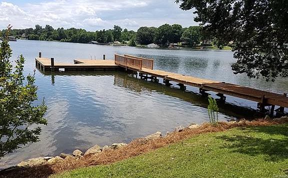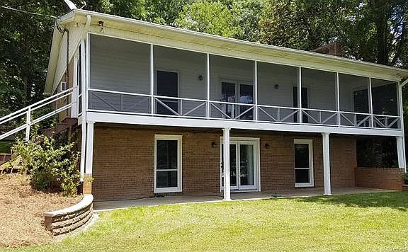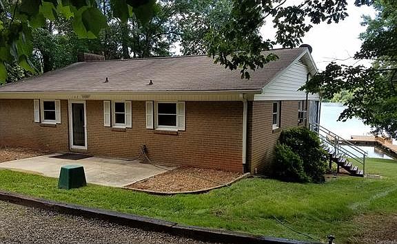Brick ranch w/ full finished basement, 124 ft. water frontage, (lot over 1/2 acre, shady), deep water year round, pier w/large boat slip and enough deck room for very large gazebo/shelter. Large (336 sq ft) screened porch w/ sunset views, covered patio w/lake view also, no-wake cove, stone steps to beach. Second patio on front, stainless steel appliances, laundry in bsmt is also 2nd kit (full size refrig, m/w, sink). Large den w/ woodstove, and rec/office area.