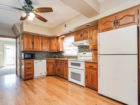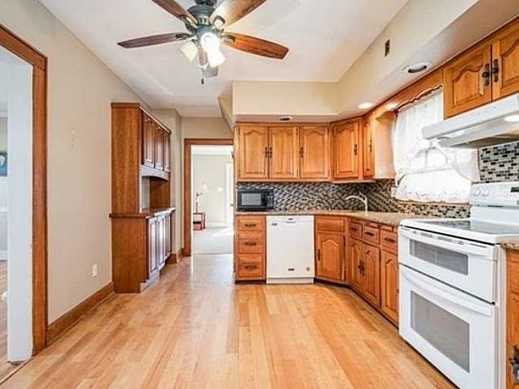 Welcome into this bright and airy 3 bedroom 1.5 bath home. Hardwood floors and neutral carpet throughout. Main level features kitchen, dining room and living room. Upstairs you will find 3 bedrooms the main bathroom and good size closets. There is a walk up unfinished attic perfect for storage. The basement is unfinished but there is plenty of room. The backyard features a large deck with an electric retractable awning. Plenty of backyard space for outside activities. there is a 2 car detached garage with storage space as well. Located close to major highways, shopping, schools and recreation. Home and Garage are being sold AS IS.
