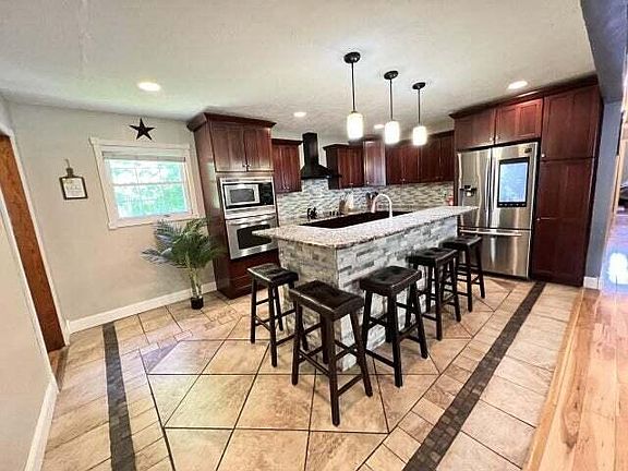 This 4 BR, 2 bath home features an open Living Room/ Kitchen. The beautiful kitchen has granite countertops, cherry Kraft Maid cabinets, glass tile back splash, stainless steel quality appliances, ceramic tile flooring, and a bar eating area. There is a bonus room off the Master BR that could be converted to a 5th bedroom. The master bedroom was originally a family room that the owner converted to a bedroom by installing a 'temporary' door that can be removed. Garage has a small storage room and access to a pipe/chimney for a wood burning stove. The back of the house offers a private deck with a 6 person hot tub and 24 ft pool - perfect for entertaining. The front yard is fenced. It's near the New River Gorge National Park and Hawks Nest State Park