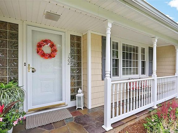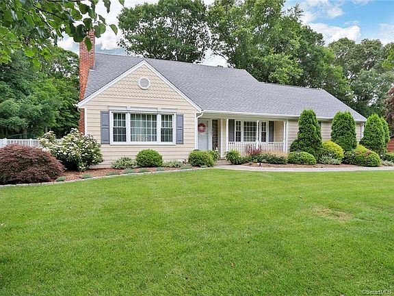 Beautifully updated expanded Cape on parklike 1/2 acre in convenient neighborhood! Inviting covered front porch, center entry opens to huge Great room with 8' blue stone fireplace, formal Dining room with 2 corner built ins, Eat in Kitchen with HW floor, Stainless appliances & Corian counters, new full tile bath with glass enclosure, BR/ Den with HW floor. Spacious upper level with generous MasterBR with 3 double closets, new full tile Bath with glass enclosure, spacious 3rd BR with access to walk in storage attic. Full unfinished basement with updated electric, heat & hot water. Gorgeous fenced level backyard with stamped concrete patio and irrigation system. Professional landscaping augments the curb appeal of this quality constructed and beautifully upgraded home!