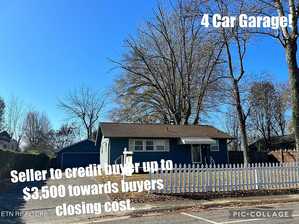 NOT FOR RENT. Home offers new kitchen! White shaker style cabinets, quartz countertops, stainless steel appliances, eat-in kitchen. Laundry off kitchen. Family room overlooks backyard deck. Home has new flooring, interior paint, new doors, lighting, hardware. Exterior has new gutters, deck. Backyard is fenced and has rare detached 4 car garage!, could be used as workshop, etc...