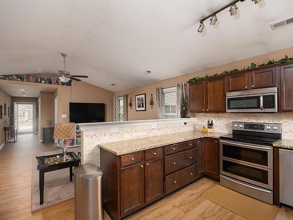 Nice ranch home in desired Pleasant Valley Neighborhood just minutes from Toyota! This popular Briggs Home Cambridge B floor plan has an inviting front porch, foyer, and opens into a large great room and kitchen! When this home was built 2ft was added in depth to plans to create 3 spacious bedrooms and 2 full baths along with a great size utility/laundry area. This home has been upgraded with Luxury Vinyl Plank (LVP) flooring throughout the entire home along with granite counter tops in kitchen. Great privacy fenced back yard with storage building and fire pit! Call your agent today to schedule your private showing!