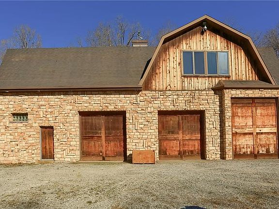 This is your chance to own a beautiful 34+ acre compound. Stone house features open floor plan, hardwood floors, Floor to ceiling stone fireplace, a chefs kitchen and amazing panoramic views of the property. Wood carved and leaded doors highlight the interior. House also has finished basement with 2nd brick fireplace and walk out to the yard. Could also close off the loft for a 3rd bedroom. Adjacent to the house is a massive 2 story garage. Lower level has room for 5+ cars with a bathroom and plenty of power for a full workshop. Upstairs has space for more quad/tractor storage and also has a finished office. Country setting yet very close to Pittsburgh International, The point at Robinson and close access to 376/79.