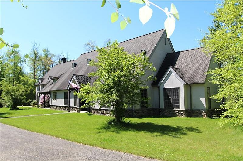 Stunning private estate nestled on 25 wooded acres in the heart of Ligonier Hunt Country. The architecture was inspired by Pgh. Architect, Benno Jansen. This home features one-floor living for the owners with 2 en suite Bedrooms and sitting room on the 2nd floor for children or guests. The LR has a vaulted ceiling with decorative beams, French doors leading to the terrace, Rumford fireplace with a carved sandstone mantle. Formal DR with French doors to screened porch. Large eat-in kitchen with cherry cabinets & granite counter tops. The Master Suite has a large walk-in closet, study, French doors leading to a private portion of the terrace and master bath with Jacuzzi tub. Off the kitchen is a mud room with a unique set of canvas bins for storage, large island. Partial basement features a wine room with extensive wine bottle racks and a chiller. The laundry room has two pull-out air drying racks, large broom closet and utility sink. A geo-thermal system provides heating/cooling.
