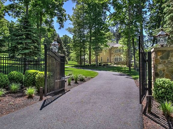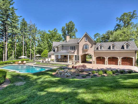 Stunning stone Manor is splendidly set on five acres of gated, manicured property. Resort-like setting with pool, outdoor bar and kitchen. Revolving views of the bucolic setting. This gorgeous home was professionally decorated. Custom window treatments, exquisite lighting fixtures, and custom cut rugs. Smart home technology is included, along with (8) Samsung Smart flat screen televisions. The kitchen was designed by Jon Brandao of "The Kitchen Design Company" and features sleek stainless steel appliances, two centered islands and white maple cabinetry. The four room master suite offers privacy and a soothing spa-like bathroom, a sitting room with one of three distinctive fireplaces and an enclosed porch. Other conveniences include two laundry rooms, a cabana bath and two staircases.