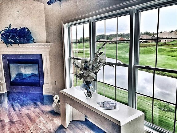 Beautifully appointed 2BR, 2 ½ Bath, overlooking incredible lake and sunset views of CC golf course. Enjoy the resort atmosphere of fabulous open floor plan concept w upgrades galore! Enjoy dbl car garage or front porch entrance all enhanced w landscape area for your creative botanical or rock garden. Inside awaits picturesque family room w decorative corner fireplace, extensive ambiance controlled, overhead and vaulted ceiling lighting topped by elegant crown molding thru-out. Custom cream kitchen w underlit cabinetry, stainless steel appliances and granite top counters sure to inspire any cook! Triple window views or balcony exit to enjoy firsthand the sights and sounds of nature. Master BR delights w walk-in closet and majestic en-suite bath- paneled wains-coating wall, heated marble floors, marble shower surround and Kohler fixtures.Head down to lower level "GREAT" room complimented w full sound surround set-up and built-in wall cabinetry to accommodate.