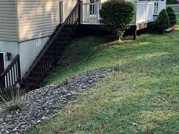 well maintained ranch home on two acres on two acres ,built with 2x6 walls and dry walled thru out, cathedral ceilings in main living area, large eat in kitchen and dining room, with double doors leading on to a 24x12 rear deck, comes with the appliances, tub and shower in master bed room with 11x5 walk in closet,16x8 covered front porch with vinyl coated railing,28x25 garage with high ceilings, insulated lower level room ready to be finished for a family room ,plumbed for a full bath, wooded back yard ,private. quiet road.