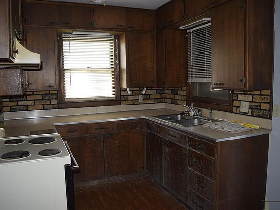 Great starter home with a lot of potential. This home has 2 bedroom, 1 bath, a family room, and a working fireplace in the living room. It also has a great outdoor space for entertaining and storage for all of your outdoor equipment and/or seasonal decor. Stove, TV in family room, outdoor grill, and all out buildings stay.