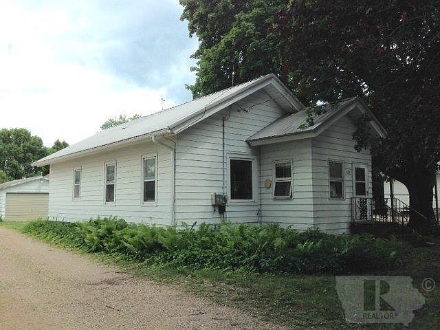 Quiet 2 bedroom, 1.5 Bath home with permanent siding and steel roof. Plenty of room to store and enjoy your hobbies on this .75 acre lot that features both a detached 4 stall garage and a detached 1 stall garage. Located next to the city park, come enjoy small town Iowa life! Property sold as-is.
