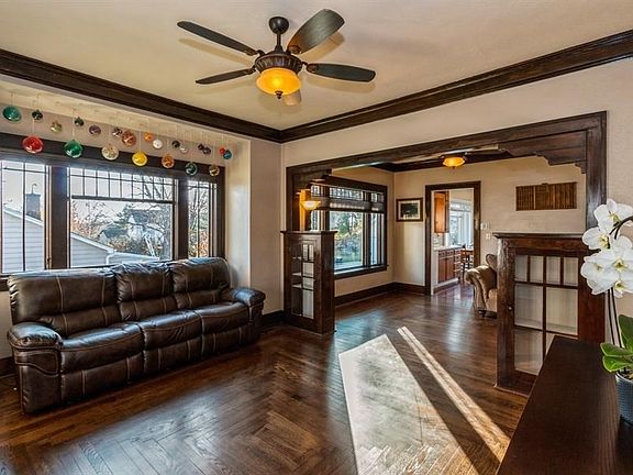 Quaint home surrounded by beautiful flower gardens and landscaping! Hardwood floors, large windows, built-ins, cozy enclosed front porch and rear outdoor covered patio. Fenced in yard. Functional lower level space with lots of storage. Updates include roof 2017, HVAC 2021, Water Heater 2021, Microwave 2021 & Driveway 2018. Most windows have been replaced. Tiger eye sumac trees and an abundance of perennial flowers blooming each season!