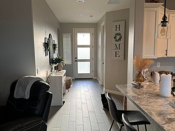 The spacious primary suite includes a private gorgeous spa-like bathroom with double vanities, a large shower, separate tub and a large walk-in closet. The three additional bedrooms are all large and filled with natural light. The custom touches in this home are too many to list. Modern front door, 8 ft doors, Stone propane tank is owned and allows for a gas stove. With an ADU in mind there is an electrical stub up for future planning. Come enjoy this nice 50-foot patio as you relax and watch the sunset or entertain your friends and family in this backyard where the landscaping has already been done for you. play with the kids in the grass and enjoy the ease of having pavers and plants that are already in Bloom.