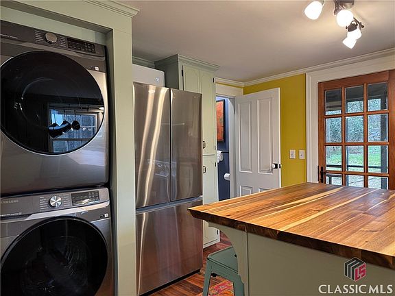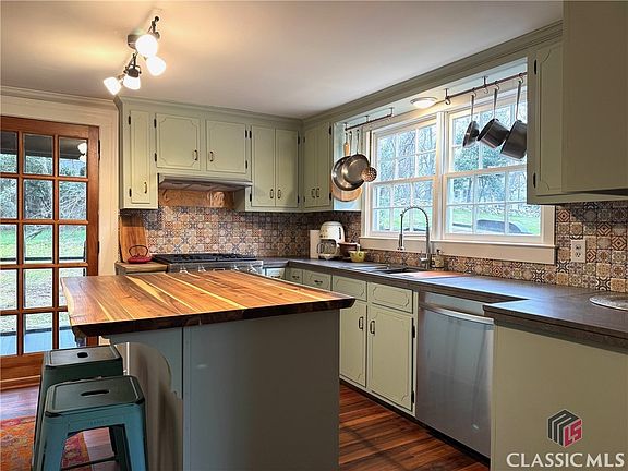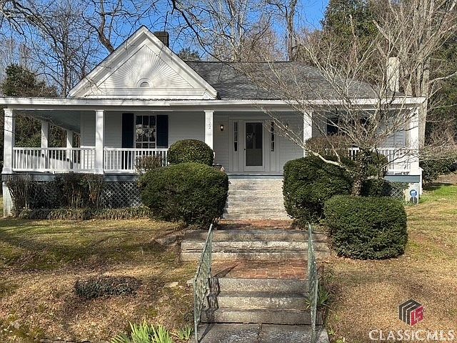 Welcome to beautiful historic Lexington, a 20-minute drive to East Athens. This sweet, picturesque home originally dates back to the late 1700's with its wavy glass windows and rolling wood floors, it has had quite a history in its 200+ years. Located on a quiet Street in a beautiful park like setting among grand properties in the historic district. The house sits on a pretty green hill with beautiful old granite steps and a brick walkway leading up to a wraparound porch. The half acre yard is contained in the rear by an ancient stone fence, which makes it feel like your in a storybook setting. You can Enjoy the view on the screened in porch which is just off the kitchen. The kitchen has been updated to include quality stainless steel appliances, including a gas range and a stainless steel laundry center. Countertops are butcher block and porcelain tile, while floors are waterproof engineered to match the existing original floors of heart Pine and Oak. Also off the kitchen, you'll find a half bath. All Bathroom materials are all either marble mosaic or tile...No fiberglass shower stalls or LVP here! The primary enjoys an en suite bath with a wide deep soaking tub. There is a Jack and Jill bathroom with a shower between the two remaining bedrooms. The bedrooms are large and ceilings are high. The center hall is a room in itself with built in bookcases. All bedrooms open to the center room as does living room via a set of French doors. New HVAC using high-efficiency mini splits that have kept the house nice and cozy these cold days, while the tankless water heater and new attic insulation make for great efficiency. The roof is recent as is the paint, and the plumbing and electric have been modernized over the last 25 years. Lexington itself is a wonderful community of interesting people many of whom you can meet personally on Saturday mornings at the Rowdy Rooster in town. You will find Artists, retired UGA faculty and folks that have lived in the community for generations. The downtown is seeing a slow but sure Renaissance. The property represents an extraordinary value for the Athens area with it's history, style, quality and artfullness. Come and see!