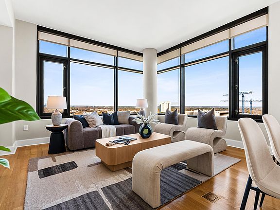 Experience elevated city living in the heart of Downtown Raleigh. This stylish 2-bedroom corner unit at the desirable Quorum Center Condos showcases sweeping city views from the 14th floor, large windows throughout, and an open layout enhanced by beautiful hardwood floors. murphy bed will convey Unit 1425 offers the convenience of two dedicated parking spaces, additional storage, and enhanced security with key fob entry directly to the condo unit along with a high-speed elevator for effortless access. Residents also enjoy the expansive 7th-floor garden terrace and a sophisticated clubhouse room, ideal for relaxing, entertaining, or working from home. Inside, all appliances convey, making this home truly move-in ready. Set just steps from Raleigh's best dining, bars, entertainment, and cultural hotspots, this corner-unit residence blends urban energy with modern comfort and convenience. Welcome to Quorum Center Unit 1425—downtown living at its finest.
