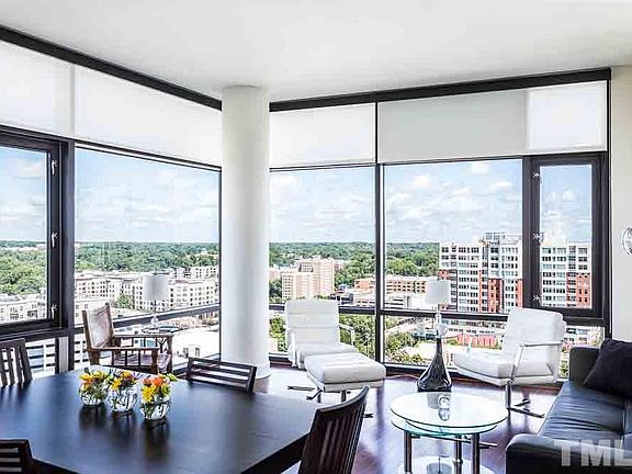Looking for the "Lock and Leave" lifestyle? Check out this 2 bed/2 bath end unit in The Quorum Center. The executive style condo features amazing views of DT Raleigh from the floor to ceiling windows, new Brazilian Cherry H/W floors, updated baths, new carpet, new water heater, and new HVAC which were installed during the reconstruction. New Refrigerator, washer/dryer will convey. Home has 2 deeded parking spaces and a storage locker. The Quorum features a community room with an outdoor patio.