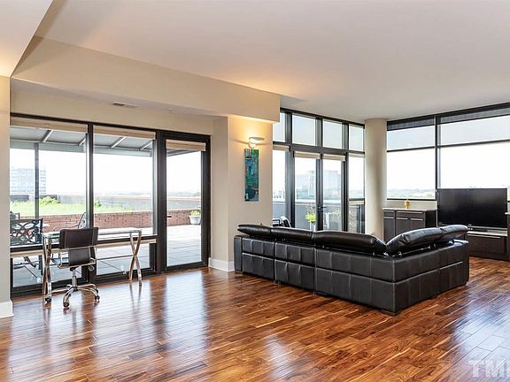 Incredible corner condo at Quorum hosts spectacular views of Downtown Raleigh & beyond. Oversized windows stream in natural light. Entertain or relax in this completely BRAND NEW, high-end oasis in the sky w/private 840 sqft patio PLUS a west-facing balcony off kitchen providing views that cannot be matched. Gorgeous brand new acacia hardwood floors! New gourmet kitchen w/Bosch appliances, custom cabinetry & huge island. Spa-like master bath & custom closet in bedroom. Private storage & 2 garage spots!