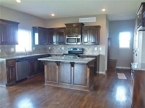 TERRIFIC NEW HOME with big kitchen featuring granite counters, island & walk-in pantry. Open floor plan offers big greatroom w/fireplace & tall windows, spacious formal dining room. Superior bedroom level with impressive master suite! ALL BEDROOMS have walk-in closets! Outstanding OLATHE schools! Interior pictures are of previously built home.