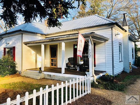 In-Town, Charming, Historic 3/2 cottage, with detached 2 car garage ( that has stairs to storage room/potential for finished space above garage ), on a truly special lot, one that has the feel of having a number of outdoor rooms, or distinct living areas: a classic front porch with views of Downtown Athens, picket fenced front yard with magnificent fir tree, fenced back yard with rear deck off kitchen, private patio behind garage, a shaded area with hammock, a fire pit/sitting courtyard next to a stacked stone retaining wall, and an open and private, sunny lawn area. This home is located on a lovely street of historic homes, directly across from a beautiful 1800s church, converted into high-end condos, and is 2 blocks from the entrance to Dudley Park, which sits alongside the Oconee River, directly across from Downtown Athens. It's also a short 2 blocks from front porch to crossing the river into Downtown. The house has had numerous upgrades in recent years: new windows, exterior doors, metal roof, new garage, landscaping, deck, paint, lighting, baths, and a stylishly renovated kitchen, with: new cabinetry, quality stainless appliances, including gas stove, butcher block counters, tile backsplash, & butcher-block island. Also, there's a custom-built table with surround bench seating in nook open to kitchen, with windows overlooking beautiful back yard. Double French doors open from kitchen onto a rear deck. The kitchen/dining room open to the family room. There's a central hallway from the front porch to rear common living area, which has 3 bedrooms, including master suite, 2 full baths, and a laundry area off central hallway. This is a rare opportunity to buy a quality in-town property for under 300k, so likely wont last long. Seller is able to move on short notice. Embrace this opportunity to enjoy the 'In-Town Athens Lifestyle Experience'.