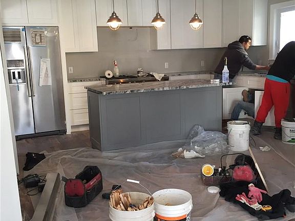 Contractor Special. Cash only. Large duplex. First floor unit has 3 bedrooms, 2 baths. Main unit has 3 floors. Four bedrooms, 2.5 baths. Large living room and kitchen with 9' ceilings. Over 3,000 sq ft. Renovation was underway when a pipe broke. Interior is now gutted down to the studs. Home has been remediated. Building has new siding. Stone facade. Azek trim. Roof is approx. 4 years old. New central air conditioning. New gas heat. Upgraded plumbing. Upgraded electric. New windows. Tiled bathrooms are mostly intact. Both kitchens are complete and in storage. Cabinets, granite, appliances etc. Main unit features a six burner stove ($8,000). Solid core interior doors.