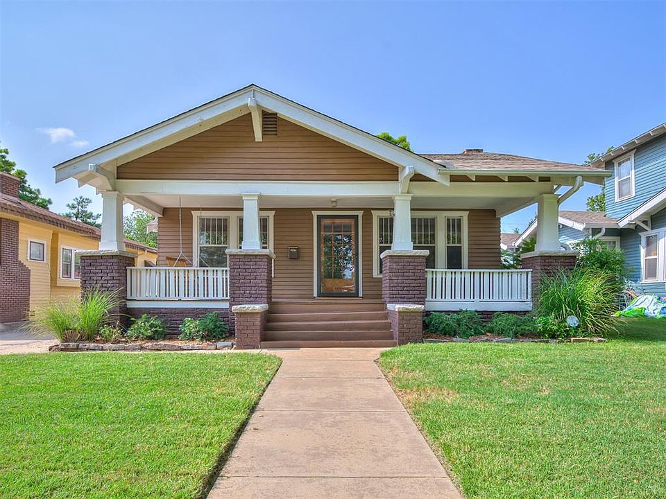 Nestled in Heritage Hills, 122 NW 22nd St is a classic bungalow built in 1919 by G.A. Nichols. A recent renovation includes new electrical service with additional outlets, updated plumbing, the addition of a second full bath and a new laundry area on the main floor freeing up the basement for additional storage The oversized windows bring in plenty of natural light. The oak floors and oak trim in the front 3 rooms add a touch of warmth and character to the space. The decorative fireplace is surrounded by built in oak bookshelves. This cozy and inviting 3 bed, 2 bath home is awaits you in the first neighborhood designated as a Historic Preservation District. Extremely walkable area to fun eateries and shopping. Great access to downtown and I235. Be sure to check out all the updates and additional history on the house included with the property disclosures.