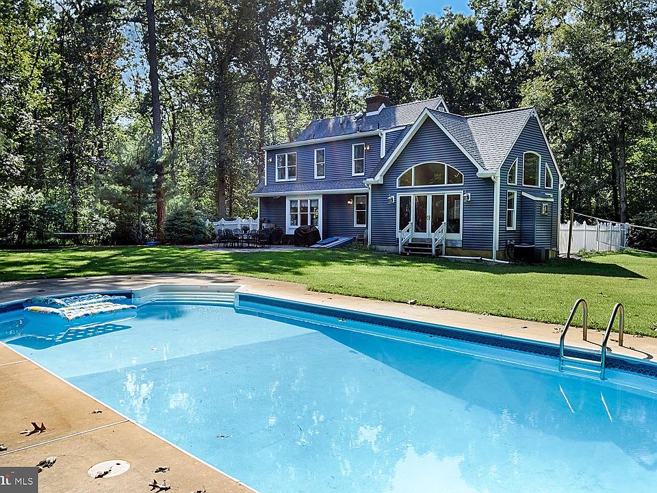 Come for a tour and make this your New Home! "Nestled on over 3 acres in idyllic rural Tabernacle, you will find this Custom Built expanded Cape Cod house just waiting for you to call home! The home has been recently updated with a gourmet kitchen that’s a chefs delight. The baker and cook in you will be delighted with the 8 burner "wolf" stove with double ovens, custom range hood and designer tile backsplash. Black granite, tops the custom cabinets with an under-mount stainless sink and a stainless dishwasher. A huge center island accommodates the microwave and is topped with a custom granite, perfect for rolling your pastry or doubling as a serving station. The crown above the island is the magnificent crystal chandelier. There is a huge walk in pantry and a large stainless fridge along with a whole wall of custom cabinets. Your Dining area is steps away from the kitchen where you can enjoy meals in-front of the crackling fireplace or gaze out of the bow window with a window seat. Your magnificent cathedral ceilings Gathering Room is flooded with natural light from the Palladium Windows and an additional fireplace warms this fabulous room. French doors open up and invite you into the garden. The convenient Living Room is currently being used as an Office where you can work and enjoy the home’s additional fireplace. The upper level of the home has an easy flow. Offering 2 ample sized bedrooms and a shared full bathroom along with a Master Suite with a new bathroom with a walk in shower. A Full finished basement offers additional living space, game areas and yes the pool table is included. A great space to watch TV and movies. On a warm summers day you will enjoy the huge 17 x 39 foot and 8'deep in-ground pool, the perfect place for outside entertaining with friends and family. The home offers an abundance of hardscaping. The icing on the cake is the new 30 foot by 40 foot Insulated Pole Barn which offers an abundance of uses from the car enthusiast, a perfect man/woman cave, an artists studio, horse barn, the possibilities are endless. The ceiling is 12 foot high and the interior is finished and insulated, there are two white trifold metal doors and a 6” deep concrete floor. You will never have a storage problem again!"