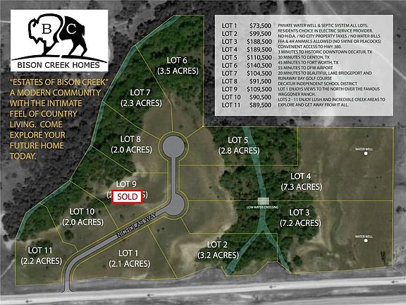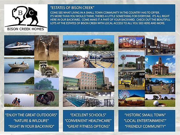 Multiple house plans are available for each lot! Select from several available plans or have a custom design done for any available lot. Call the listing agent to learn more. The Estates of Bison Creek are full of unique and beautiful lots with equally amazing customized homes. Enjoy country living with the convenience of location. The Estates of Bison Creek boasts creek views, and large trees at an ideal location. Small town living with big city amenities, just a short drive away. If you have questions, call the listing agent for even more details. No homes are currently constructed in this subdivision. ***Final Pricing will depend on Floorplan, lot selection, and finish out***