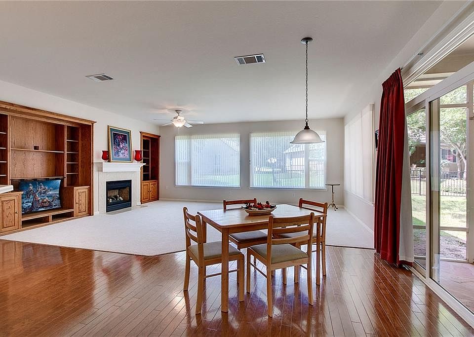 Available for immediate move-in! Travis plan located walking distance of Texas Dr. amenity & fitness center, this home offer 3 bedrooms, 2.5 baths & a Texas size family room w/fireplace & built-ins. Kitchen has corian counters, white cabinetry, built in oven & microwave, gas cooktop. Refrg, washer & dryer can stay. Guest bedrms are sep fr master for nice privacy for guests. Flooring includes hardwoods, carpet & neutral tile. Roof replaced 2013. Screened-in back patio. No smoking or pets in home.